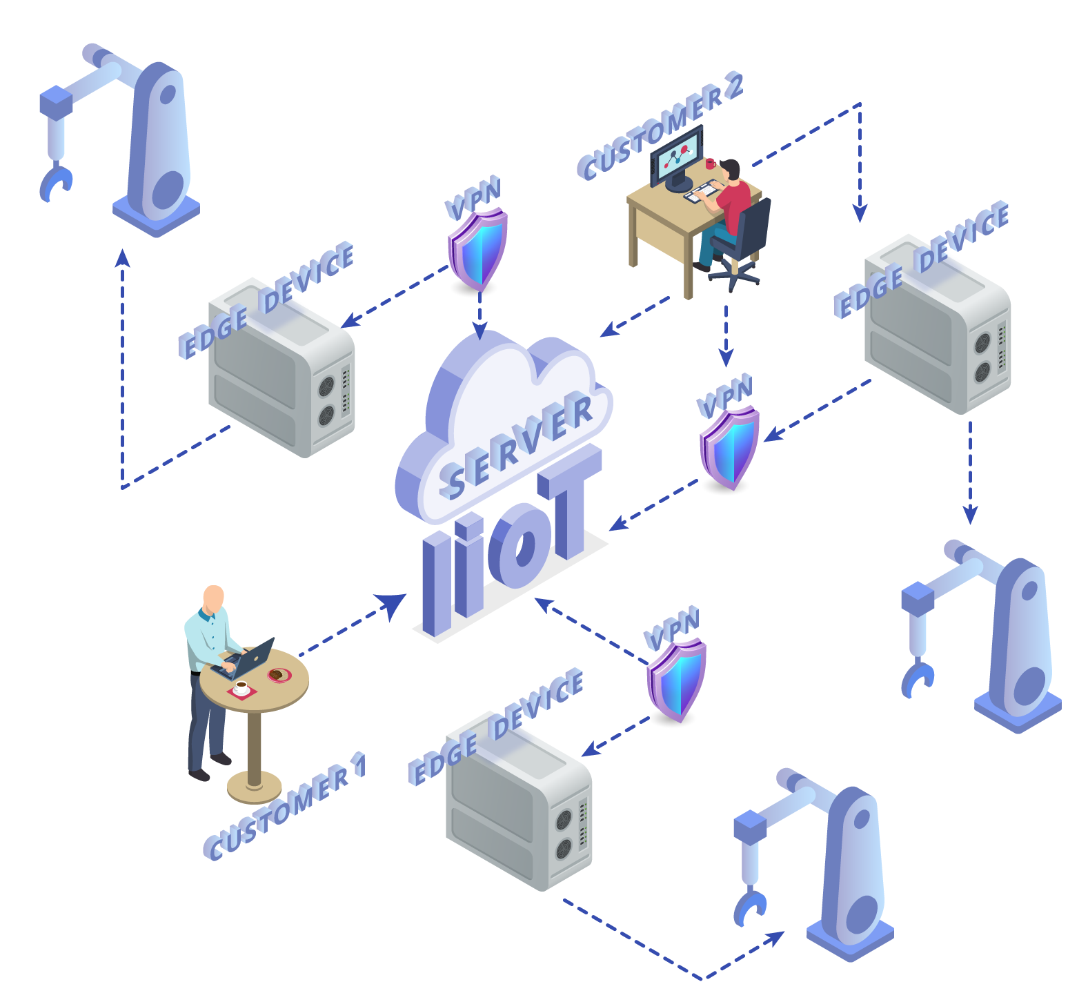I diversi dispositivi sono comunque isolati tra loro, in nessun modo da una rete di un cliente si potrà raggiungere la rete di un altro cliente.